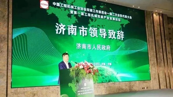 大会现场,济南高新区党工委委员、管委会副主任张磊发表致辞,他表示,本次会议的召开,对深入贯彻党的二十大提出的“广泛形成绿色生产生活方式”、“积极稳妥推进碳达峰、碳中和”具有重要意义,期望“双碳委”和各企业能共同携手,促进国家低碳、新能源工程机械及零部件的技术产品进步,为推动工程机械绿色低碳发展做出应有的贡献。